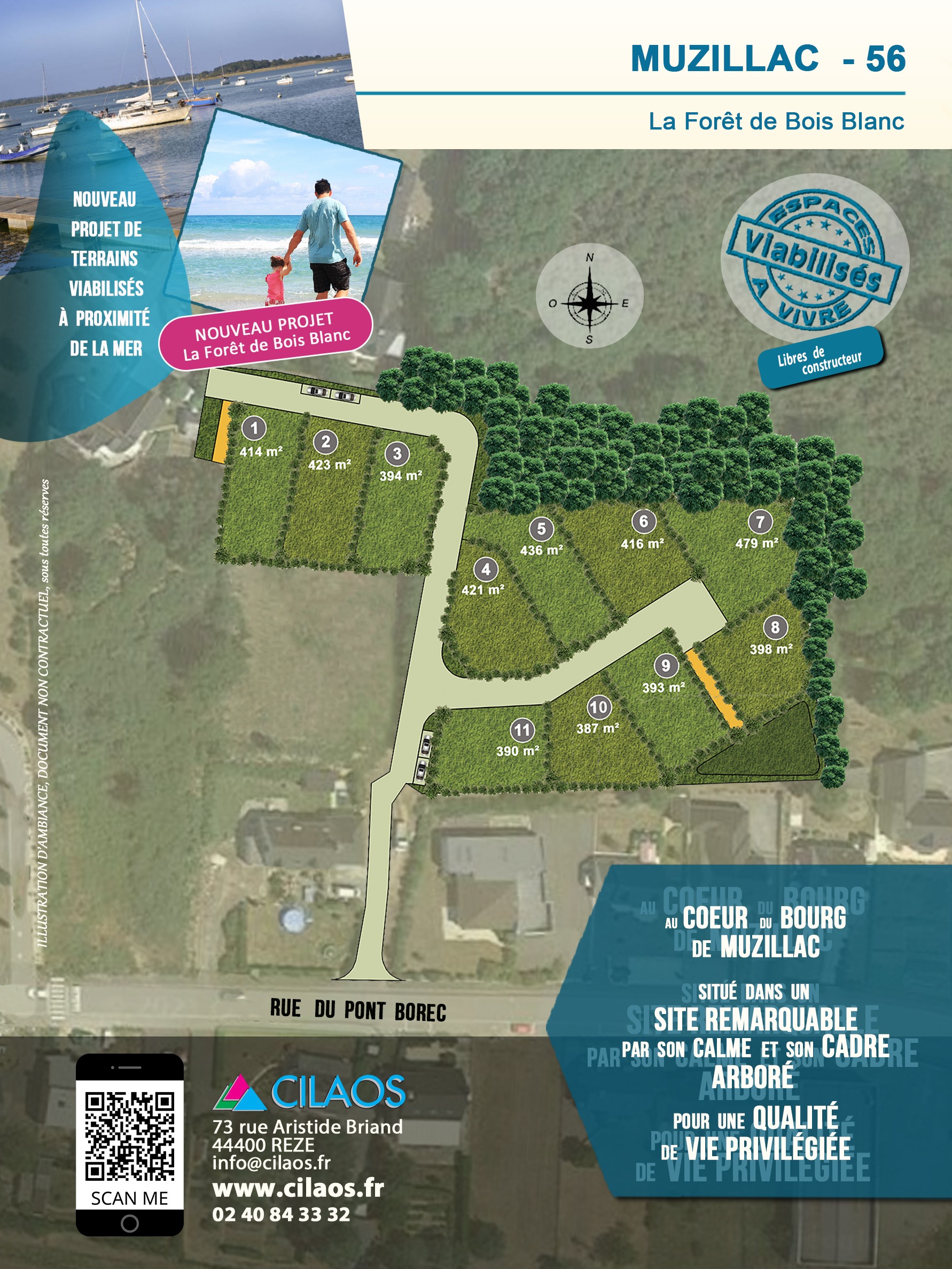 Profitez pleinement de ce cadre en vous rendant directement sur place, à la rue Pont Borec. Un panneau de l'aménageur vous indiquera le plan des lots.