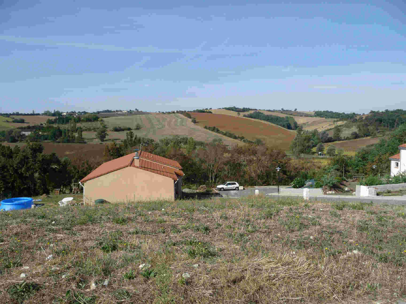 Terrain de 770 m² au pied d'un village typique du Lauragais, dans un petit lotissement résidentiel. Position dominante, belle vue panoramique dégagée, en partie sur les Pyrénées. Exposition principale sud-est. Environnement calme et préservé à 40 mn de Toulouse, accès aisé par sortie autoroute. Proche de toutes les commodités dans les communes voisines.