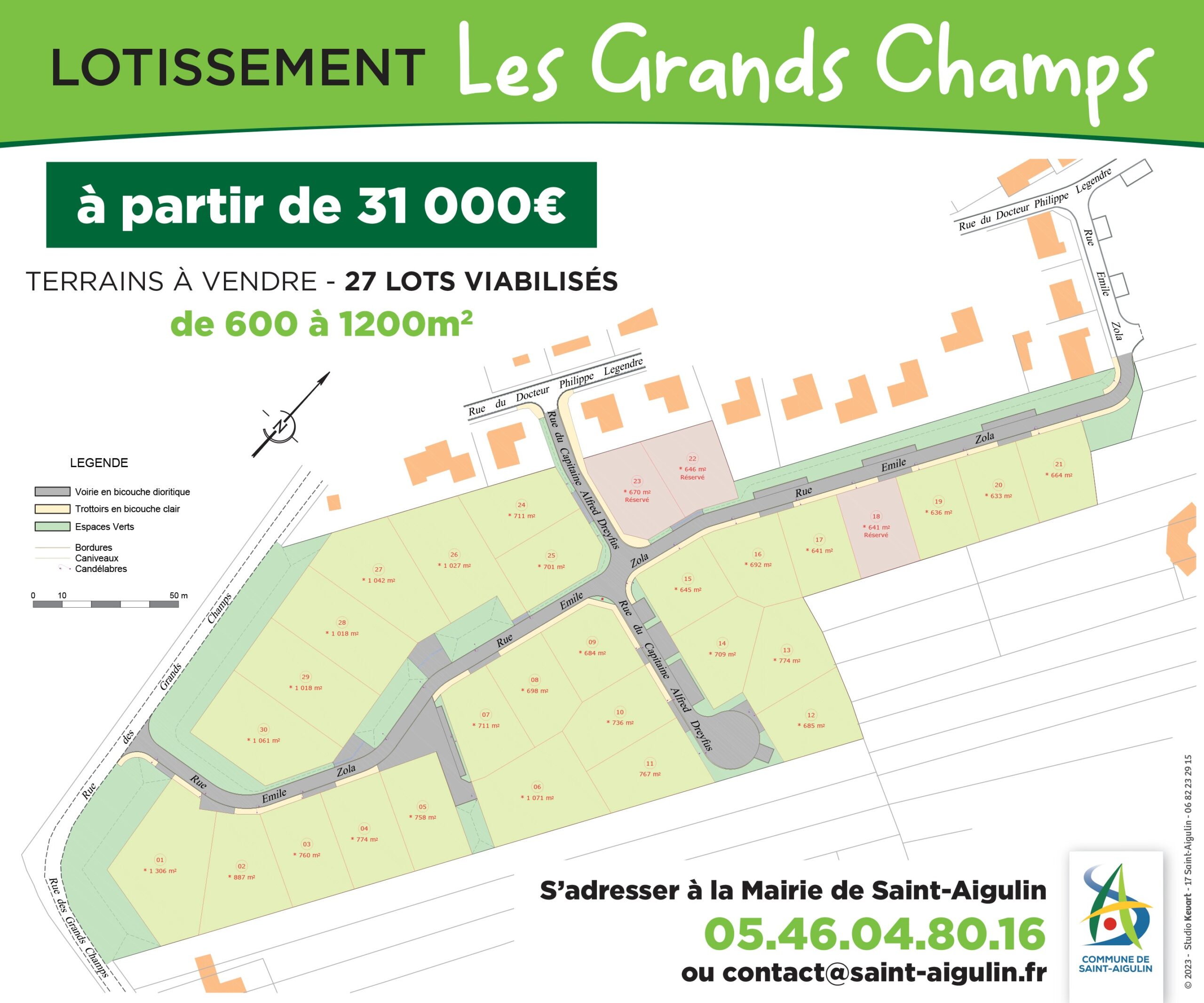 27 lots viabilisés (eau, électricité, gaz de ville, assainissement, fibre), de 600 à 1200 m², à partir de 31 000 € - Libres de constructeurs